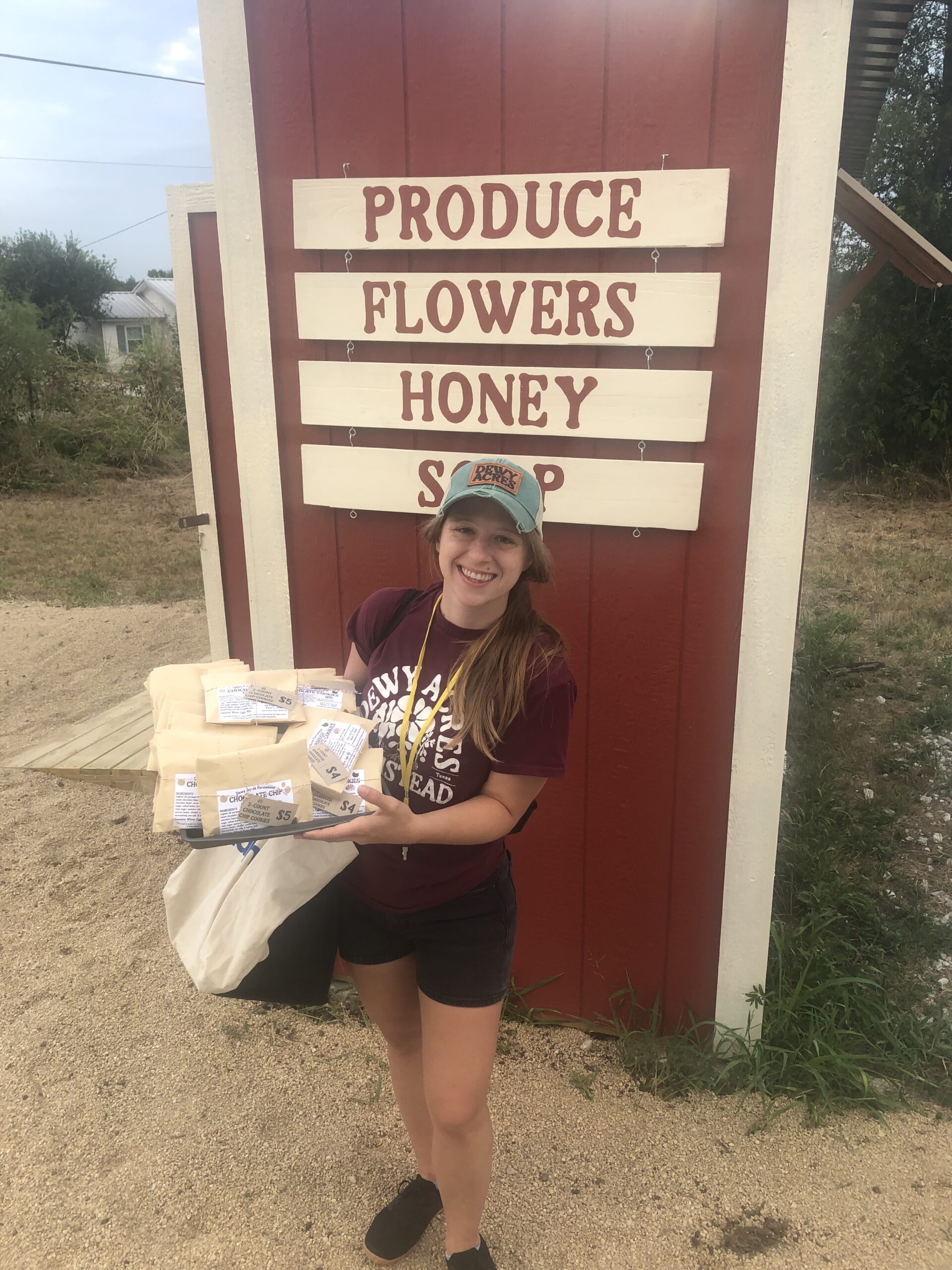 Hey! I’m Laura, and I grew up right here in Riesel, TX. I never dreamed of running a farm or farm stand, but looking back it all makes sense. Aside from my childhood of running around barefoot with the chickens and goats, I graduated from Texas A&M in 2014 with my Zoology degree. I’m thankful for my science background as it makes learning about soil health, pollinators, and other biological processes that much easier.